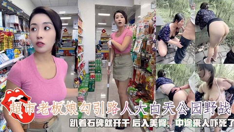 视频名称:超市老板娘勾引路人,大白天公园野战趴着石碑就开干中途来人吓死
